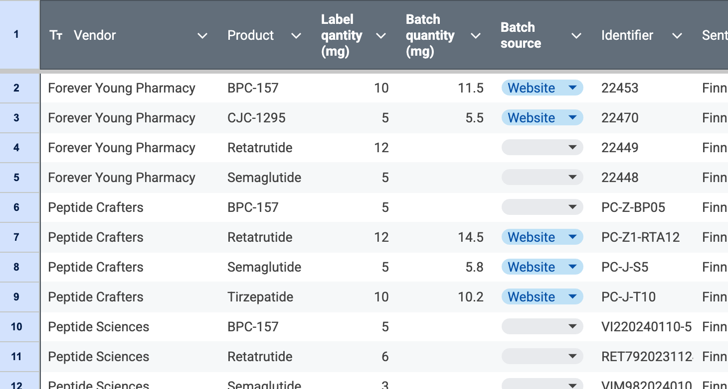 Complete access to Finnrick's comprehensive database of peptide tests from leading vendors worldwide.